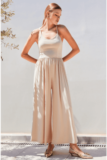 MACACÃO WIDE LEG ALÇA TRAÇADA BEGE