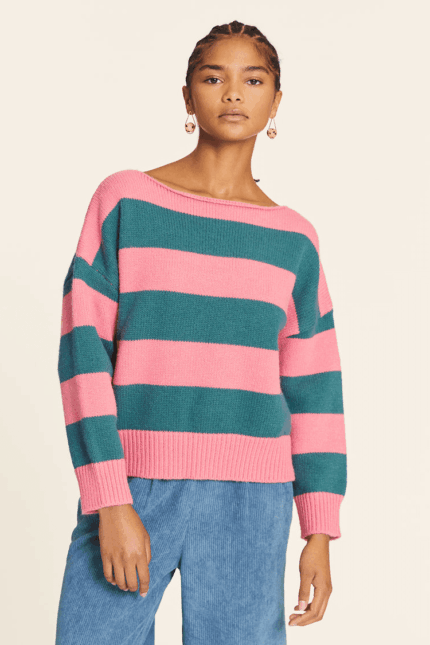 CAMISOLA JERSEY RISCAS – ROSA E VERDE AZULADO