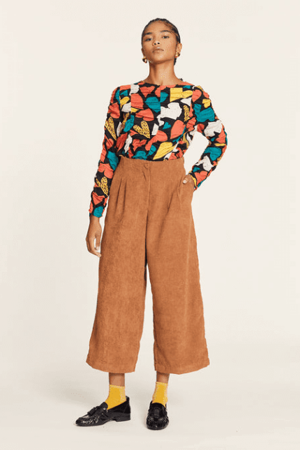 CALÇA CULOTE COM PINÇAS – CARAMELO