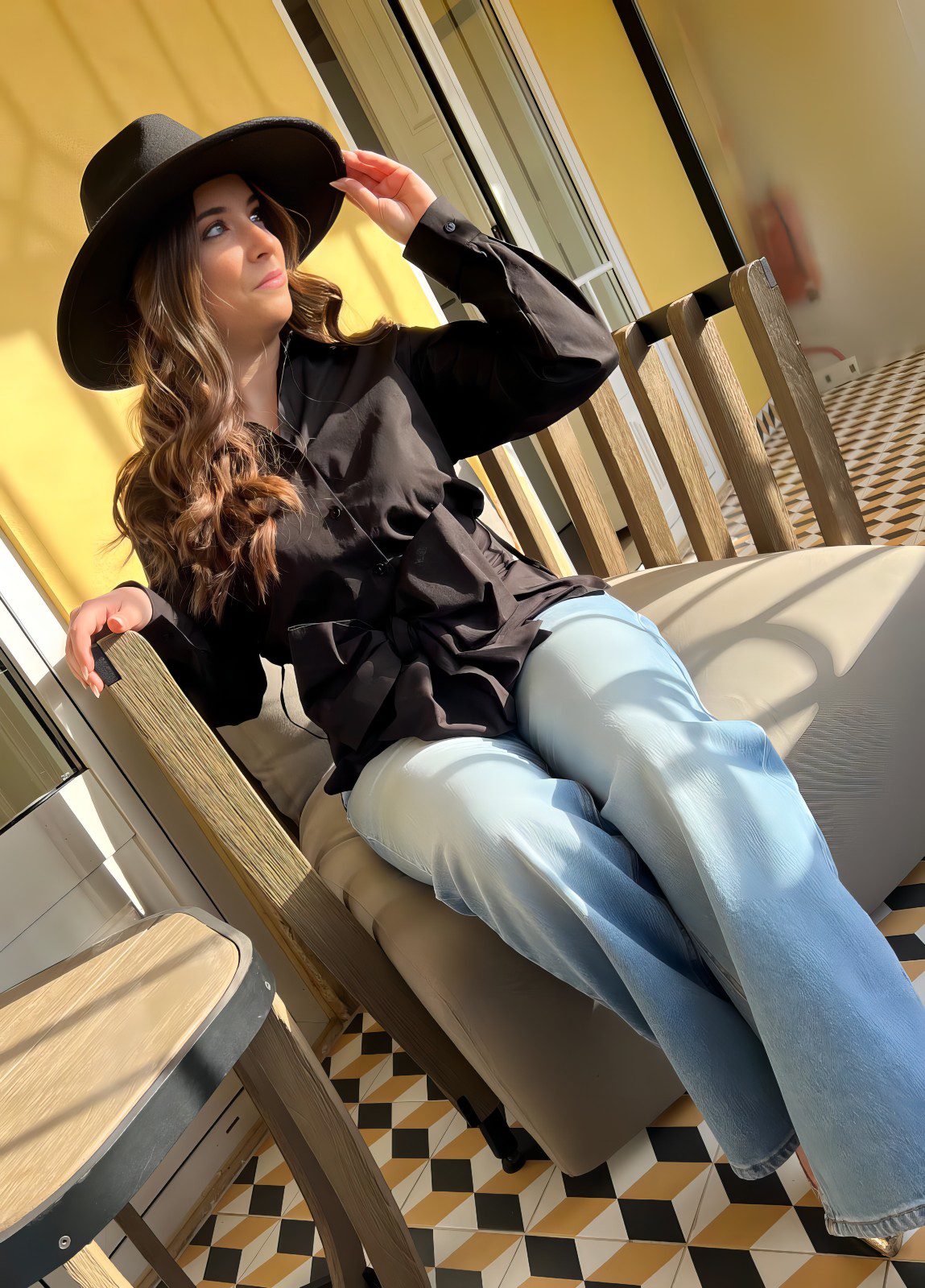 CAMISA PRETA C/ CINTO LARGO ELLA BY TAM