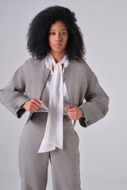 CASACO CURTO COM CONTRASTE CINZA CAFOFO – TAM L