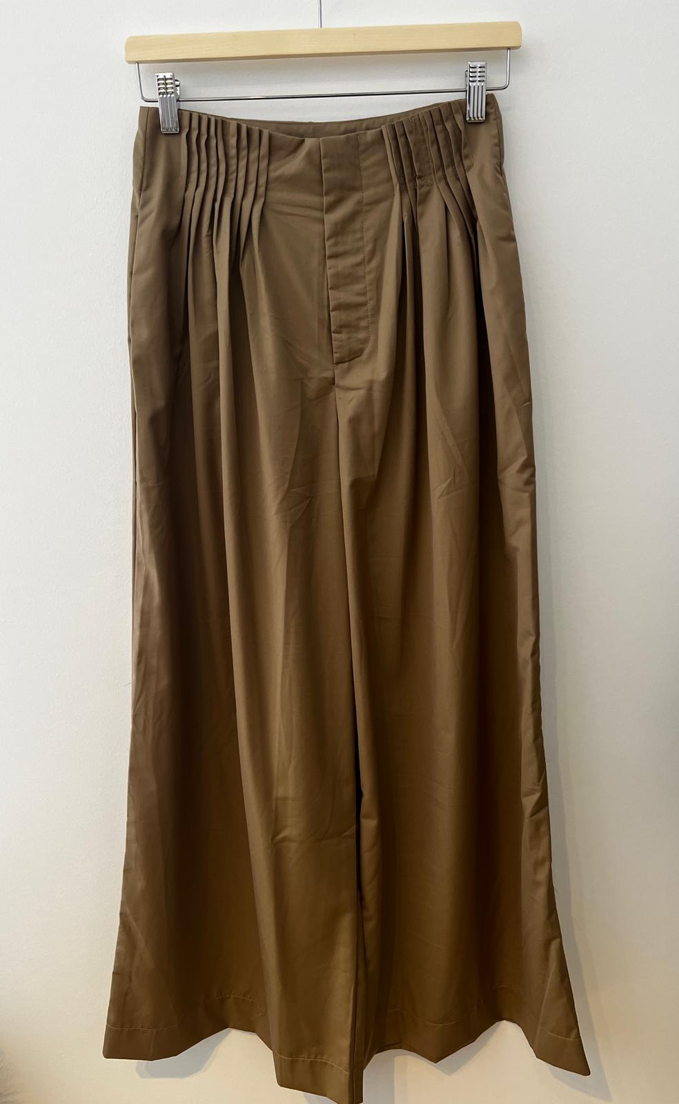 Calça 100% linho, estilo pantalona. Tecido de toque extremamente suave, ligeiramente acetinado. Tem cintura subida, com nervuras que fazem pequenos machos, zip frontal e bolsos laterais.