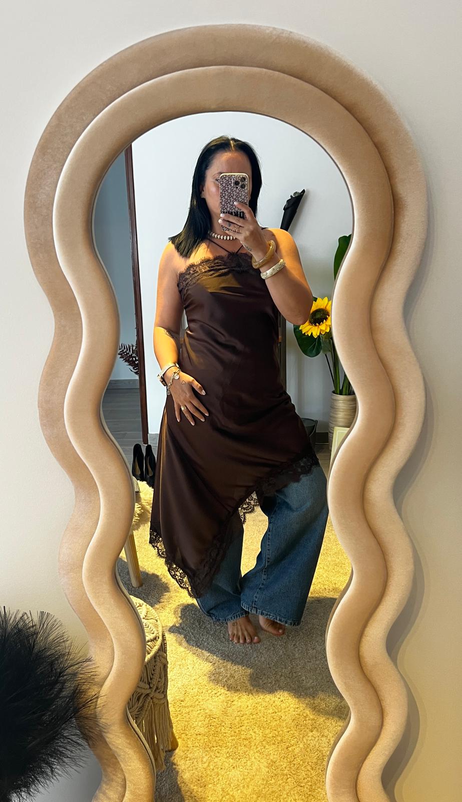 VESTIDO ACETINADO RENDA – CHOCOLATE – TAM L/XL