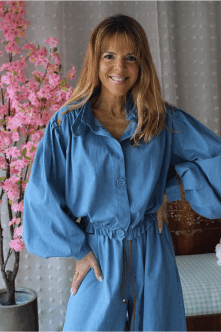BLUSA/TÚNICA AZUL CLARO COM RENDA MARIA CATITA – TAM U