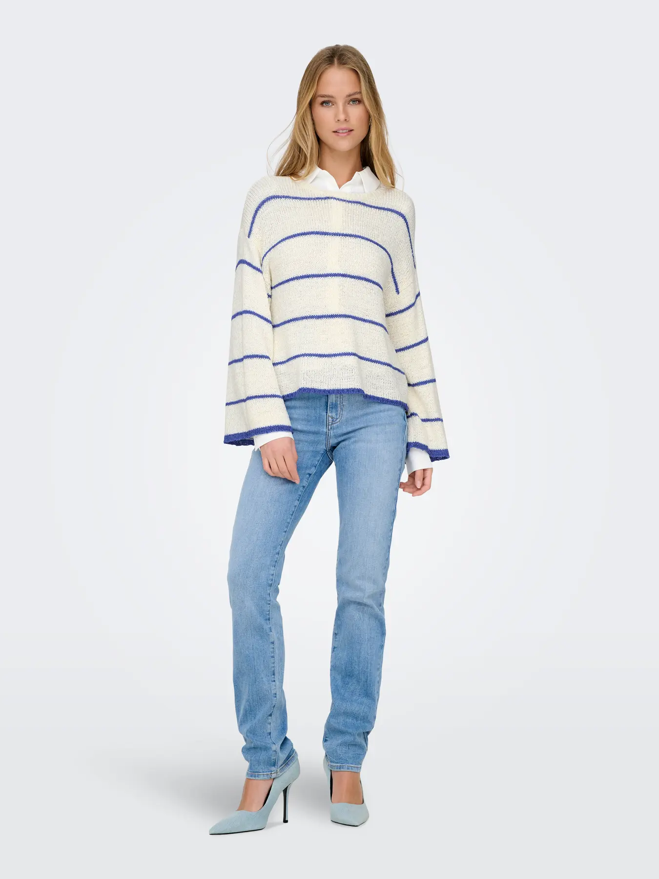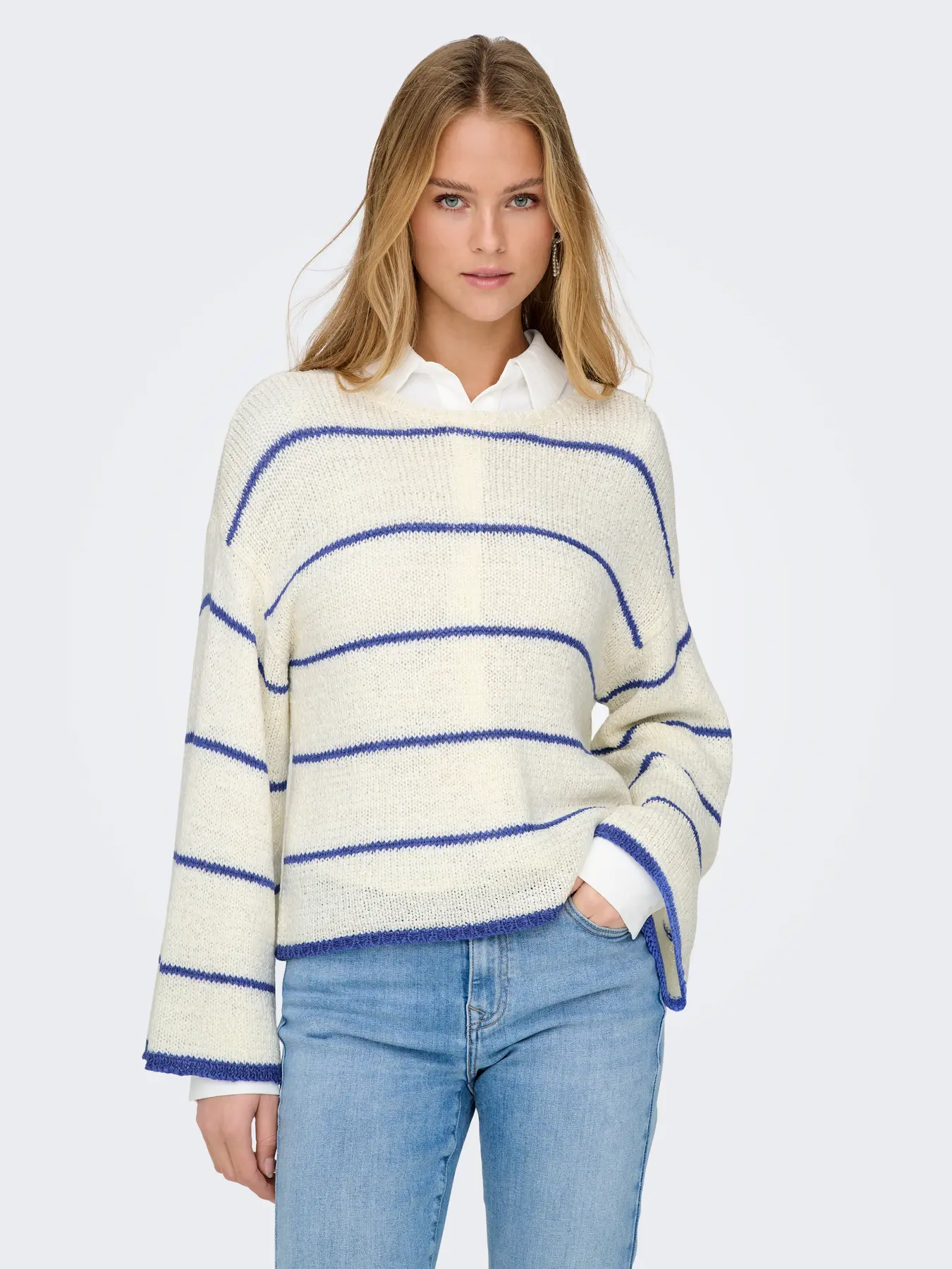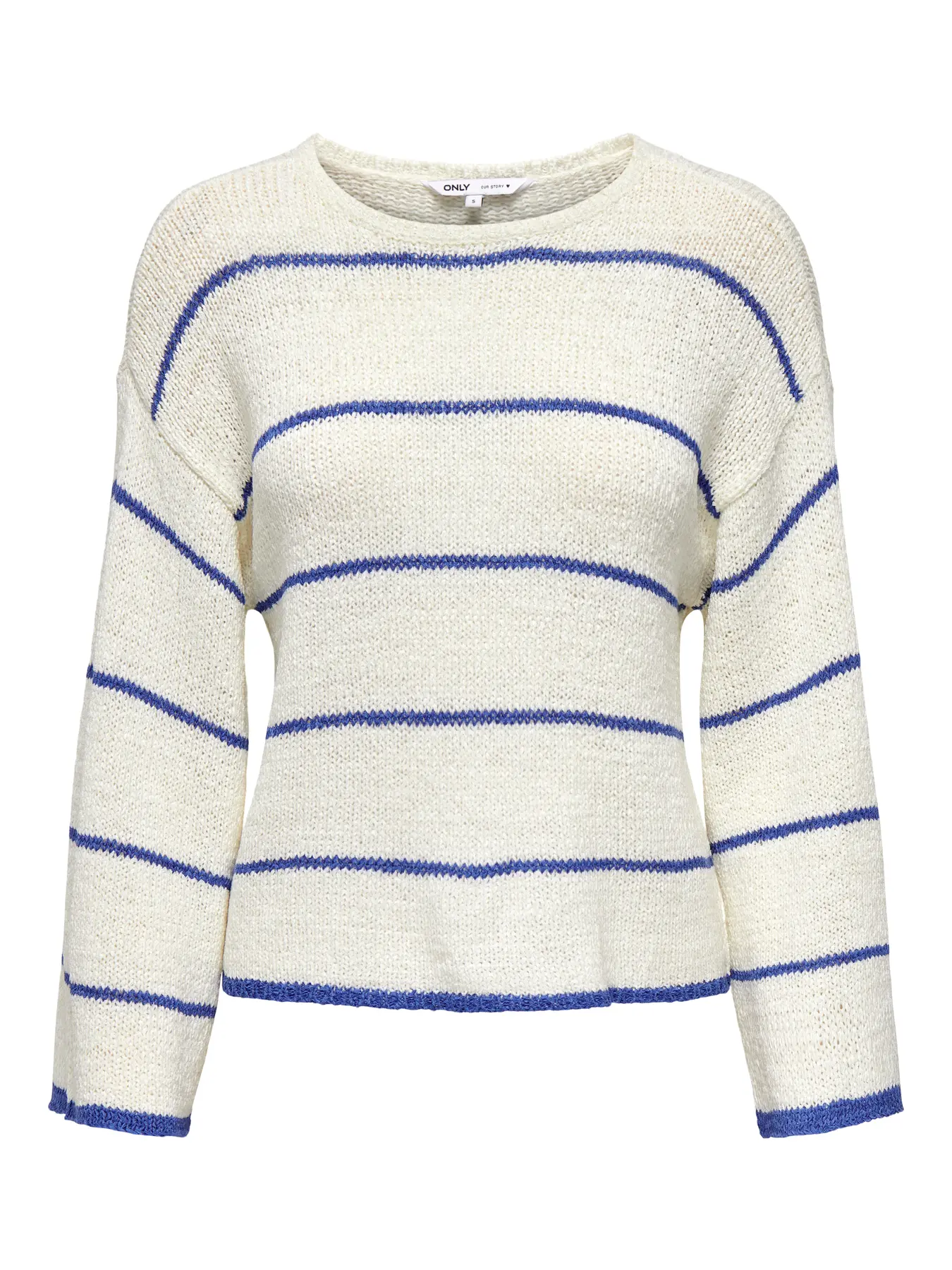 PULLOVER ONLY – ONLGEENA 7/8 STRIPE O-NECK – Loose Fit