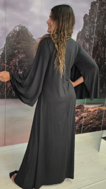 VESTIDO COMPRIDO MANGA MORCEGO TROPICAL BRASIL – PRETO