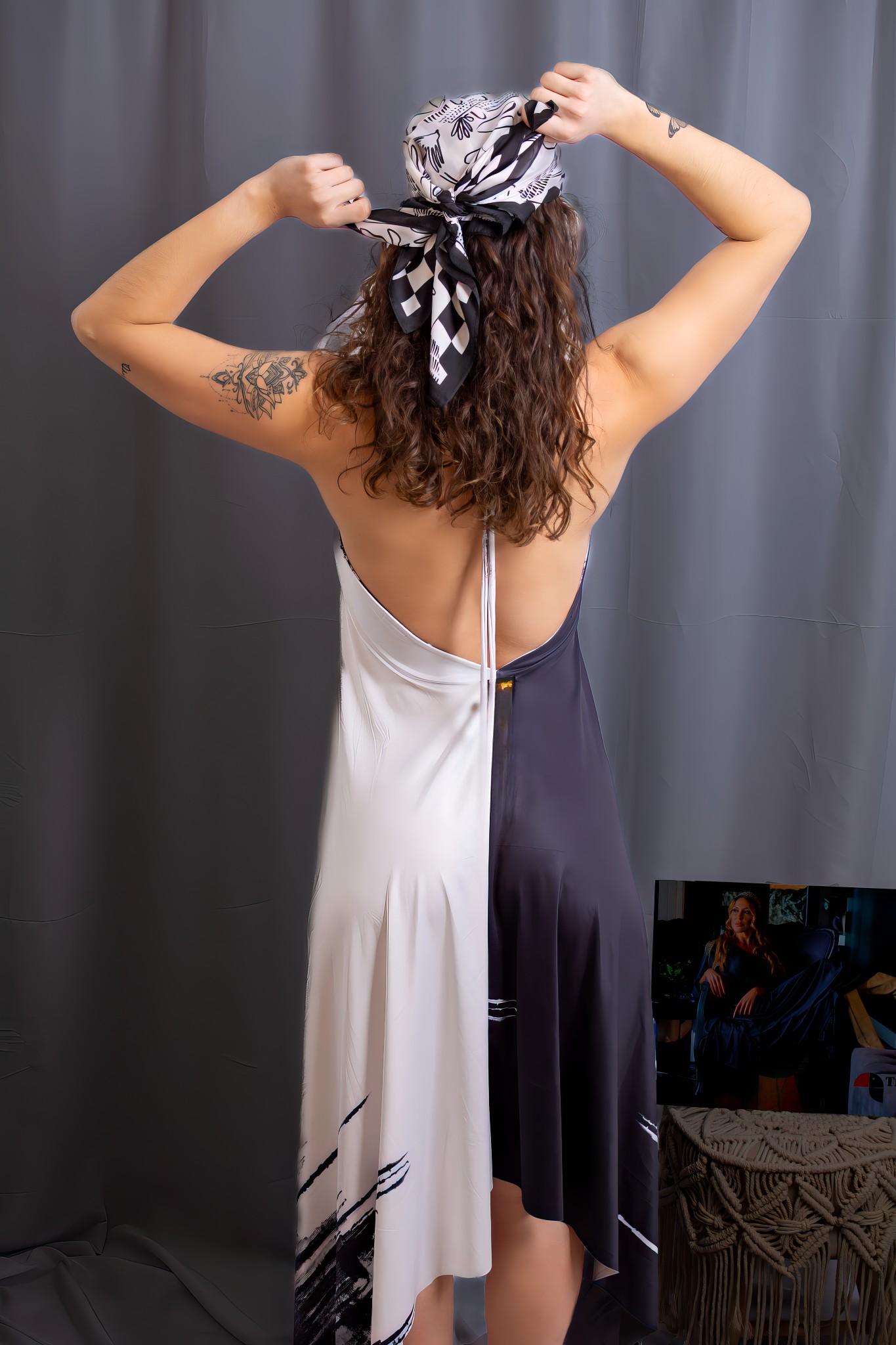 VESTIDO PRETO E BRANCO SEM COSTAS TROPICAL BRASIL – TAM U