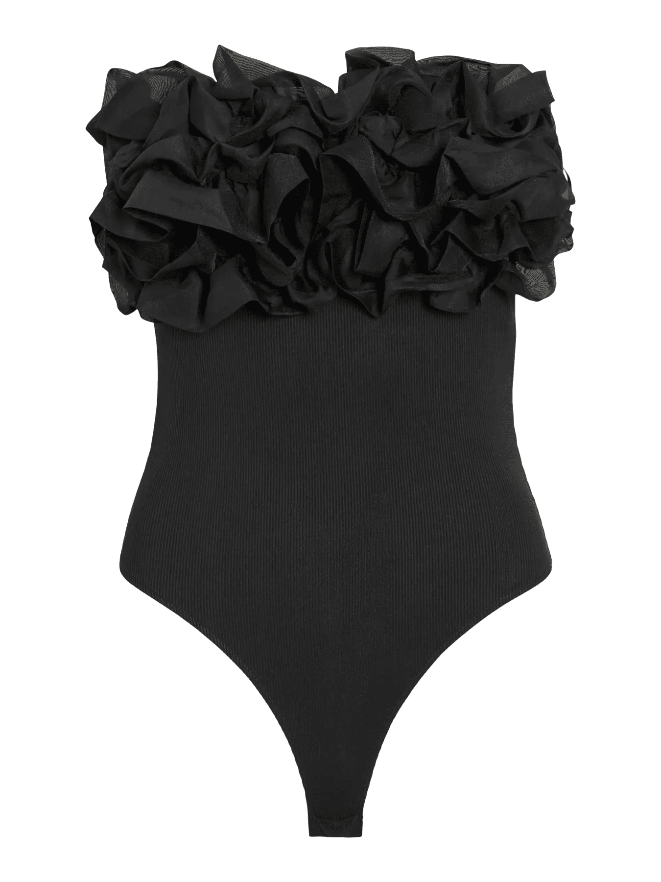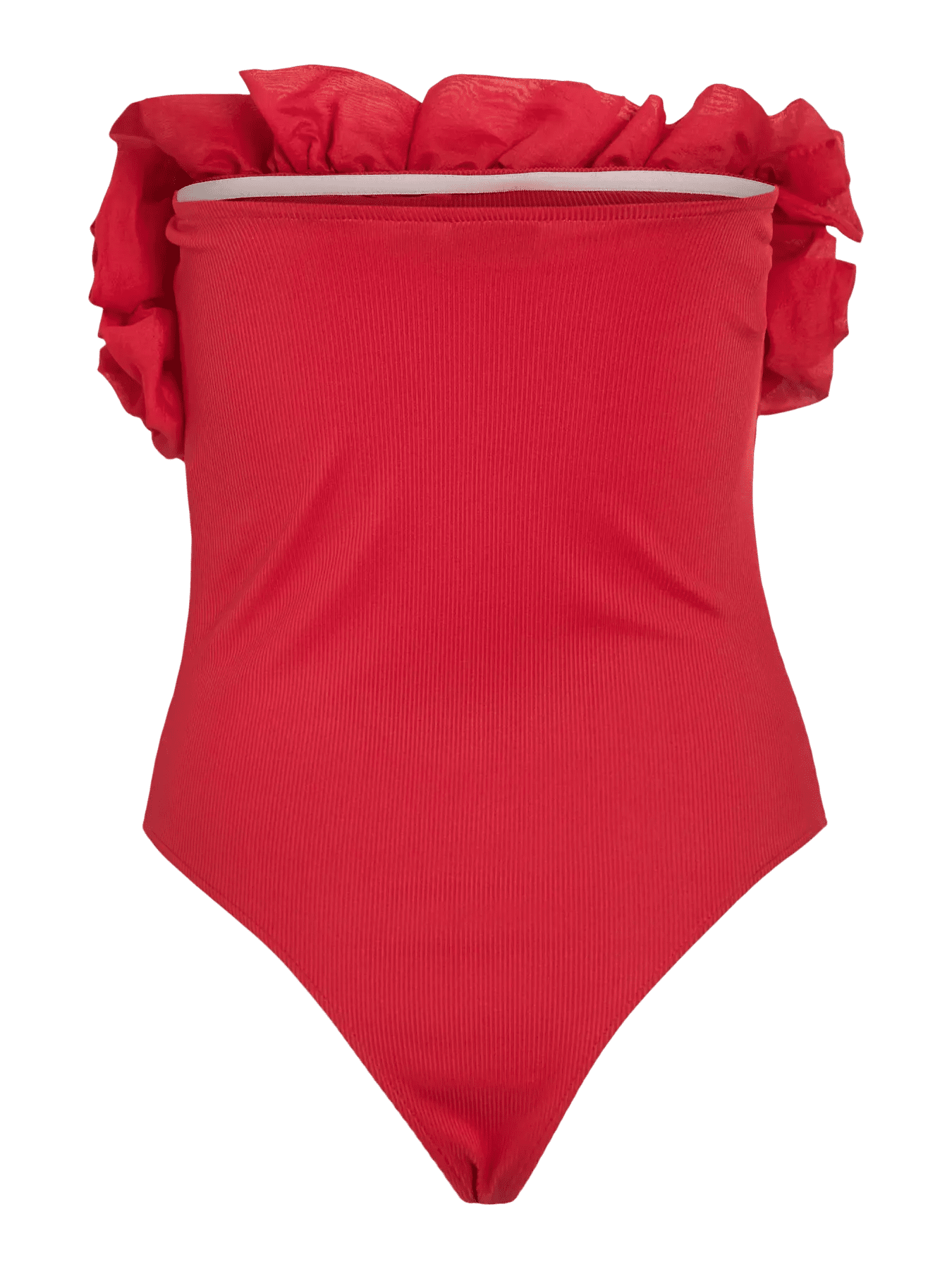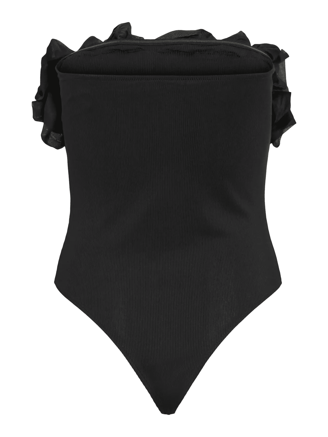Body cai-cai, com silicone para melhor ajuste, com detalhe de folho em toda a zona do peito. Em malhinha canelada muito fina, para um conforto inigualável.